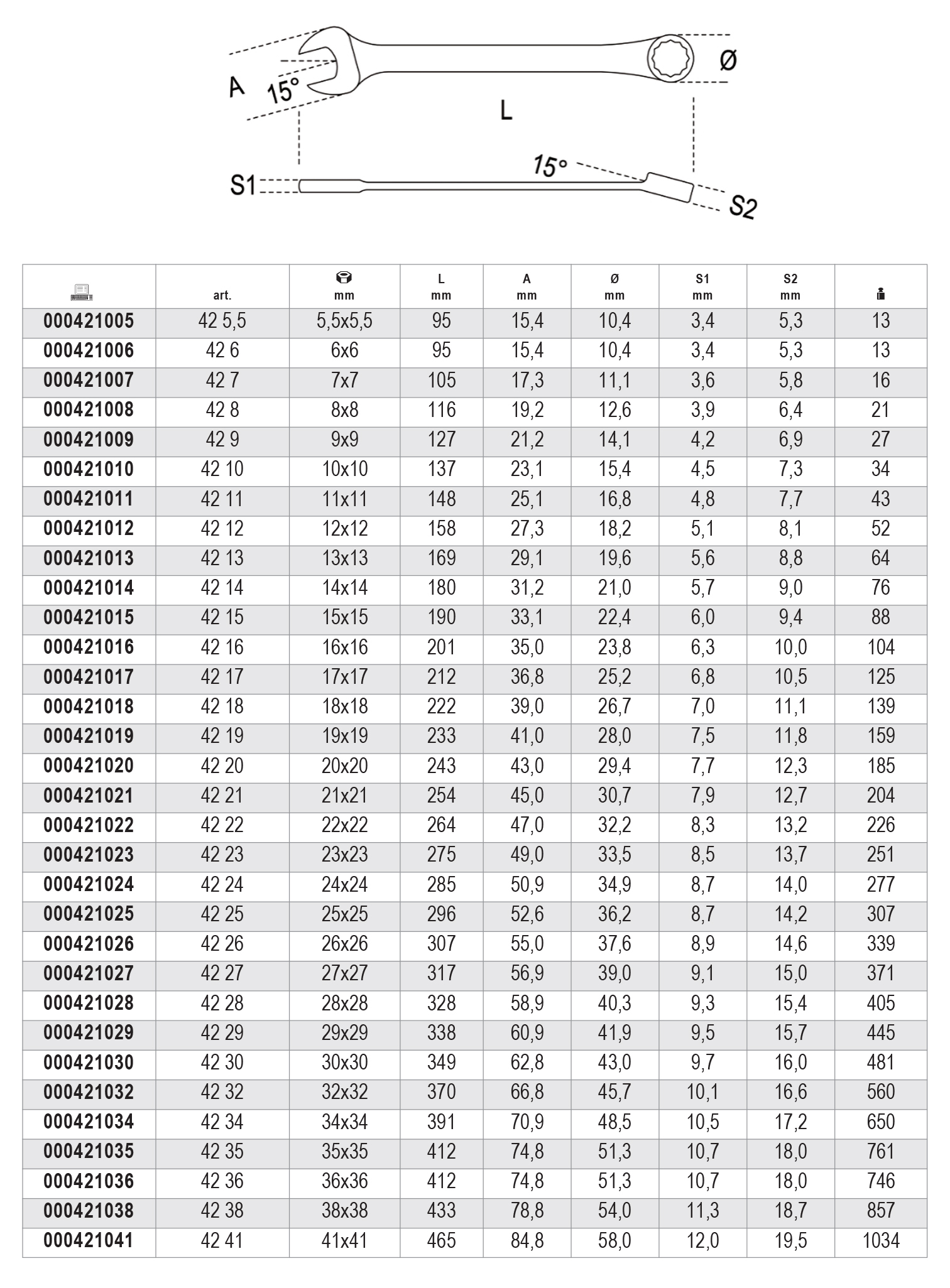 La chiave combinata Beta 42 ha un design ergonomico che la rende maneggevole e pratica da utilizzare in qualsiasi spazio.